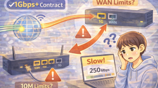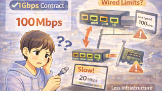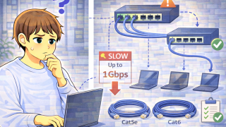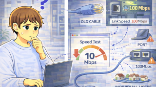 スイッチングハブを使うと速度は落ちる?1Gbps対応ハブの仕組み、100Mbps制限になる原因、上流ポートの影響、正しい選び方と見分け方をわかりやすく解説します。